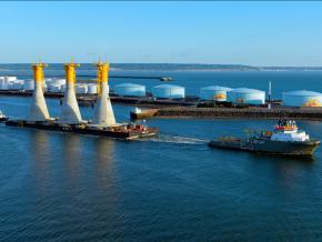 Le premier convoi transportant les trois premières fondations gravitaires a quitté le port du Havre pour prendre la mer - Enlarge image, modal window