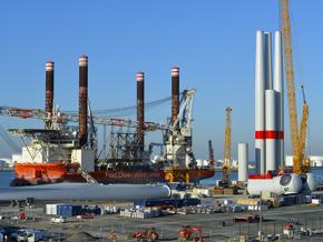 ecological and energy transition : Le Havre : loading the first wind turbines