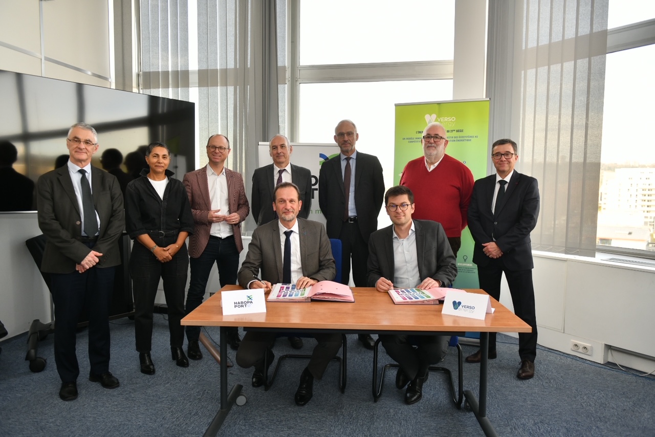 On 22 November, HAROPA PORT and VERSO ENERGY, a specialist in renewable energies, signed an agreement to set up an industrial unit to produce low-carbon hydrogen and synthetic fuels in the HAROPA PORT port area in Grand-Quevilly. The site will be located on land belonging to HAROPA PORT in Grand-Quevilly, on the outskirts of Petit-Couronne. This development project will help to secure and strengthen the local industrial ecosystem. Commissioning is scheduled for 2029.