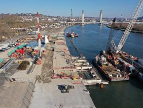 On the Rouen quaysides, the first steps of the project started with the relocation of the networks and the reinforcement of the plateform slab. In the mean time, the construction of a new berthing front has started.