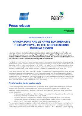 • HAROPA PORT and Le Havre boatmen give their approval to the shoretension mooring system