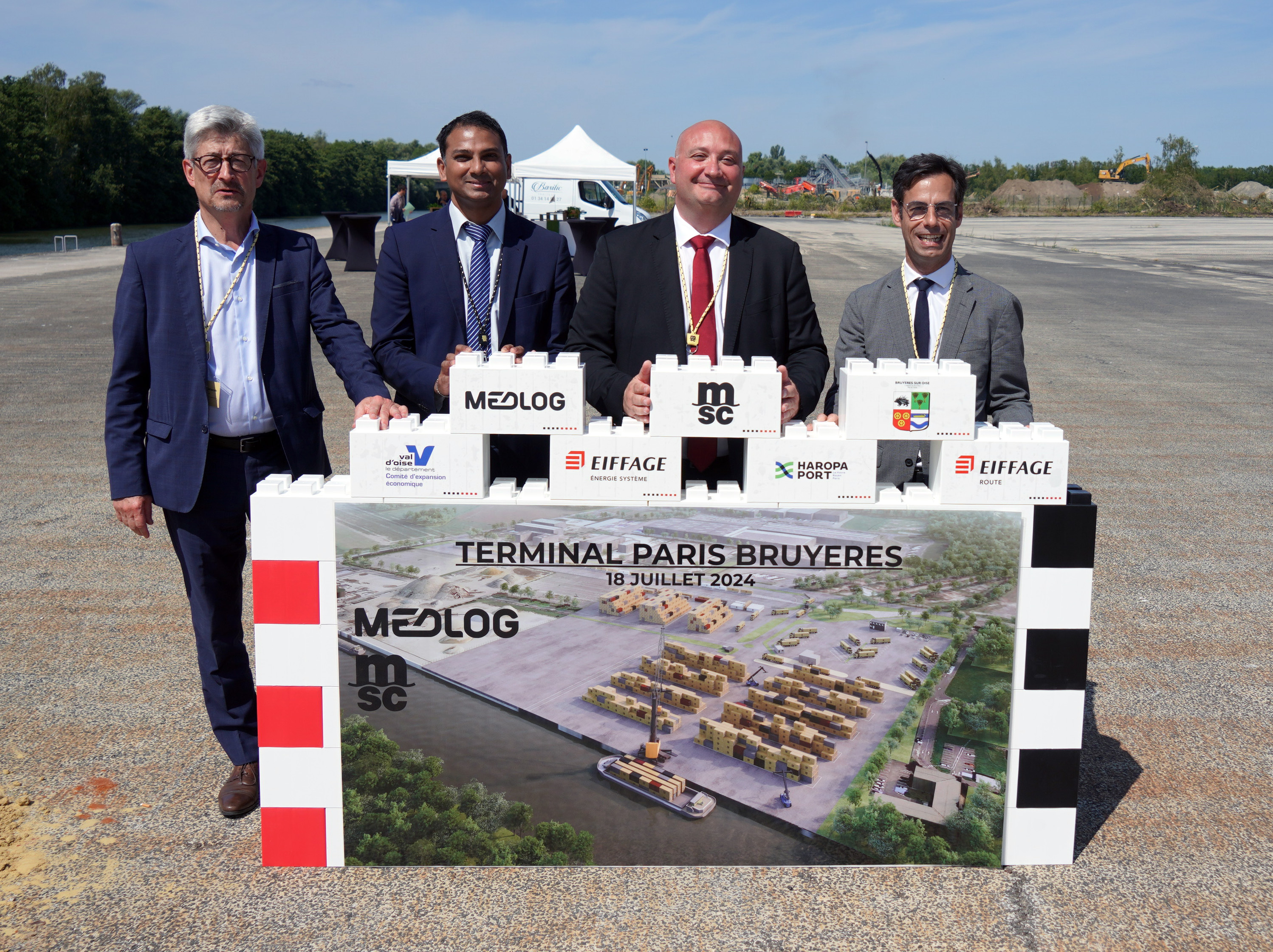 Organized at the initiative of Philippe Lestrade, chairman of MSC France and managing Director of MEDLOG France, the laying of the foundation stone for the MEDLOG Inland Terminal Paris-Bruyères at the Bruyères-sur-Oise terminal marks two milestones: