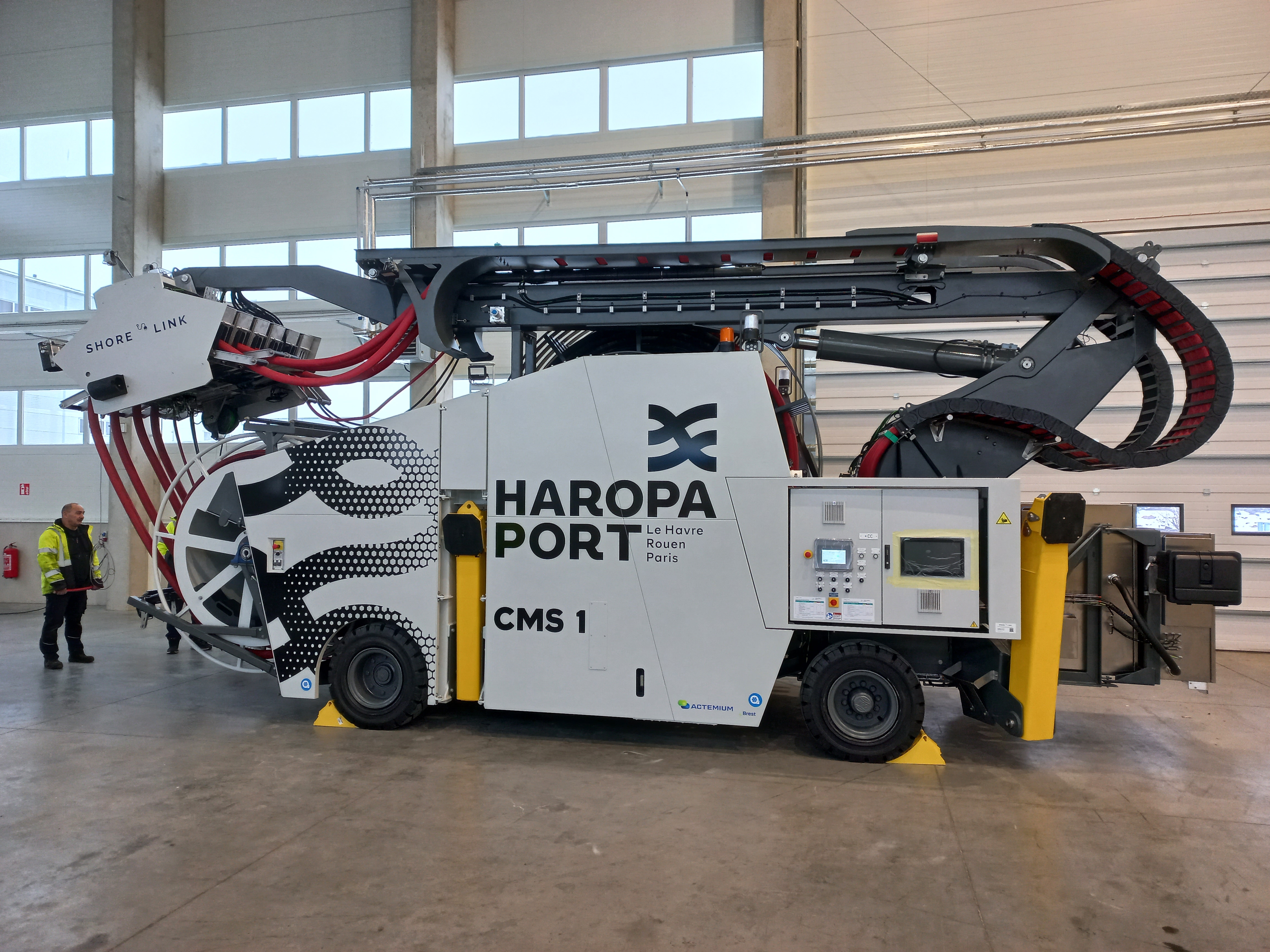 Under the guidance of HAROPA PORT's teams, two vehicles, each weighing 20 tonnes and equipped with articulated arms, were developed to meet the specific requirements of Le Havre.