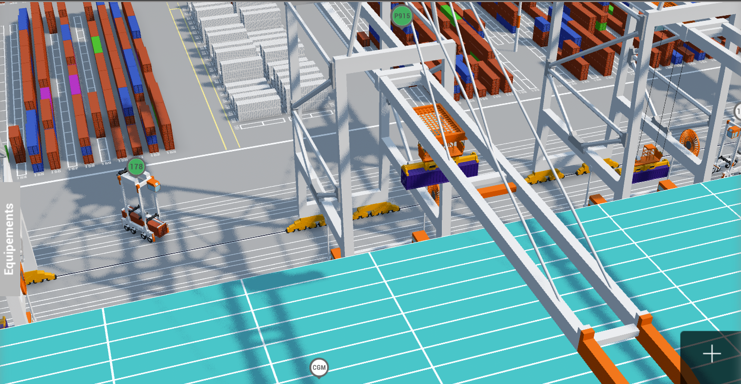 Le jumeau numérique est une représentation digitale 3D de l’activité en temps réel du terminal de France exploité par la GMP et de l’ensemble de ses infrastructures et équipements : cavaliers, portiques, conteneurs, camions, navires, etc.