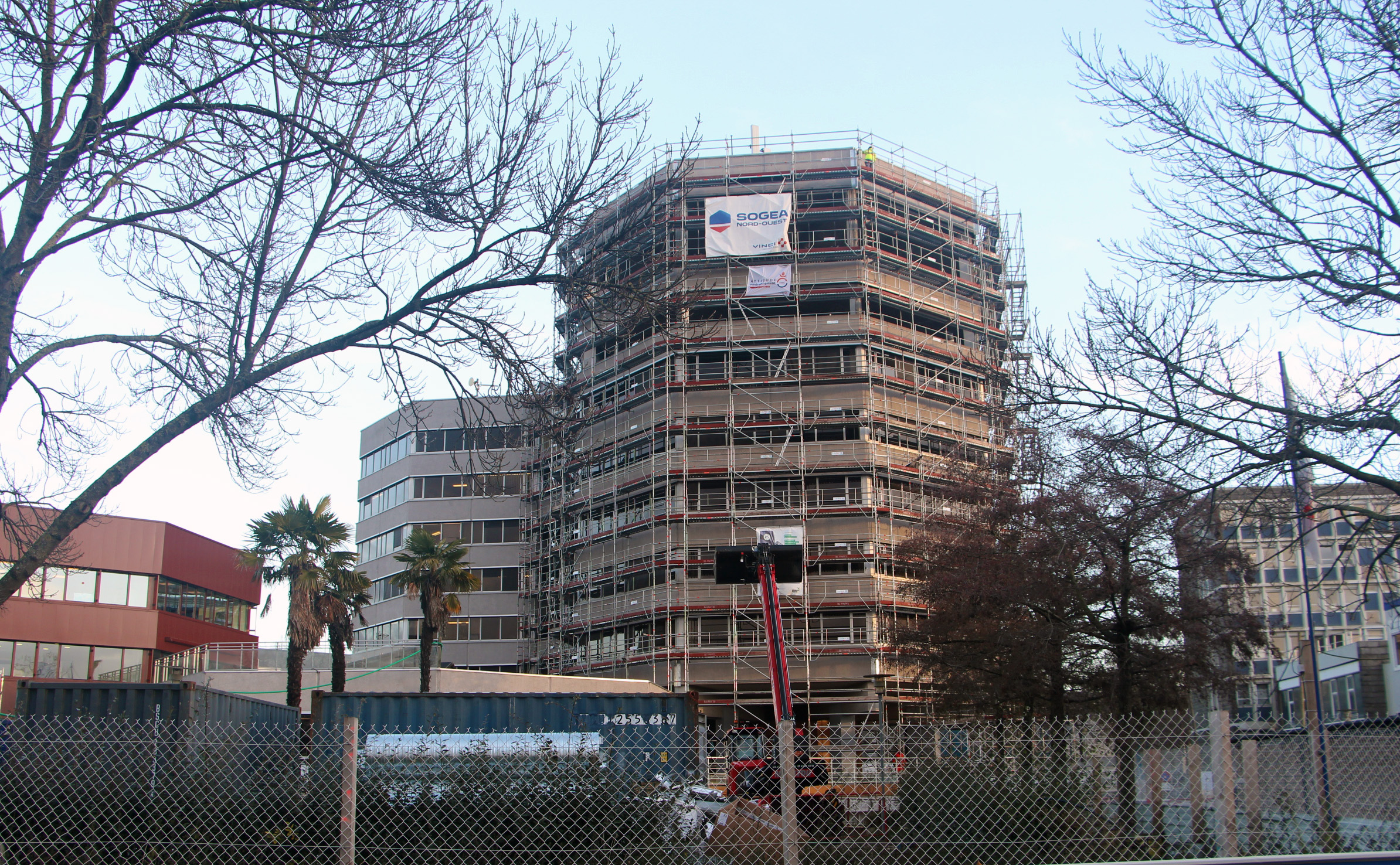 La tour D, première des cinq tours à avoir été entièrement rénovée, accueille depuis septembre les bureaux des salariés. C’est désormais sur la tour A, la plus imposante de l’ensemble, que les travaux se poursuivent. Les échafaudages nécessaires pour la réalisation de l'isolation extérieure et du bardage sont déjà en place tandis que les opérations de dépose des huisseries existantes et de désamiantage se poursuivent.