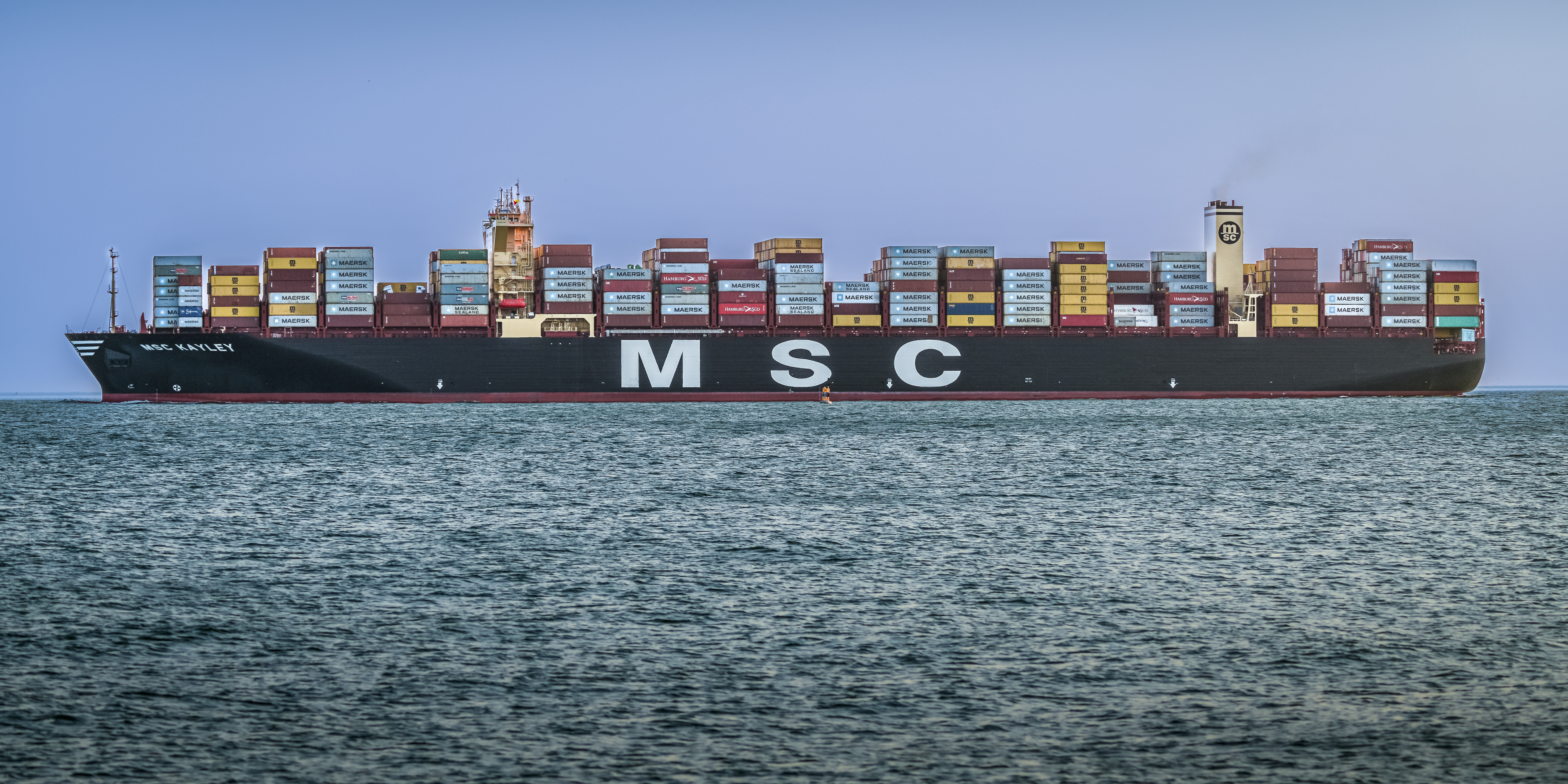 Ce mercredi 14 juin, HAROPA PORT accueillait la première escale du porte-conteneurs MSC KAYLEY. Avec ses 366 m de long pour 51 m de large, ce navire dernière génération est propulsé au GNL et dispose d’une capacité de 15 264 EVP. Il rejoint la commande de porte-conteneurs au GNL que devrait affréter MSC.