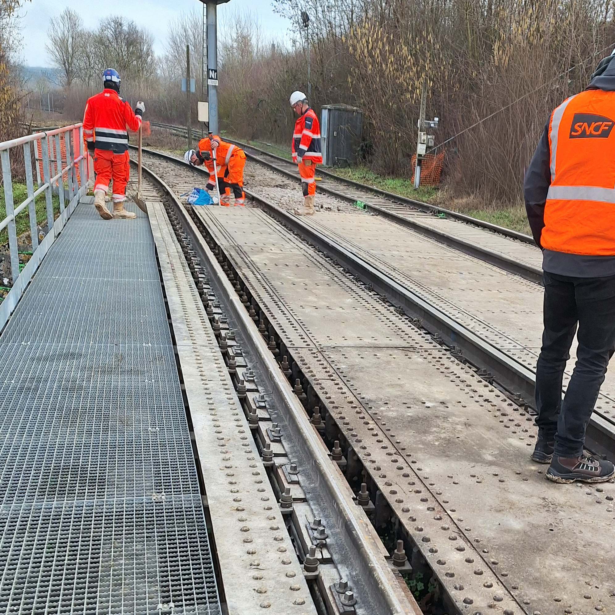 La phase actuelle des travaux pilotés par SNCF Réseau concerne le remplacement d’un pont-rail, ouvrage ferroviaire stratégique. Constitué d’un tablier métallique à poutres jumelles, il fait l’objet d’une modernisation complète afin d’améliorer la fiabilité de la ligne et de sécuriser les circulations ferroviaires.