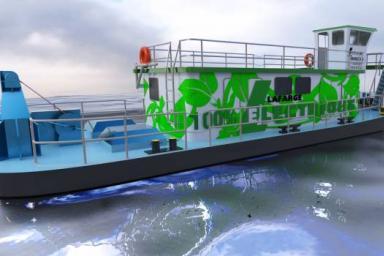 Transition écologique et énergétique, Fluvial : Le Marsouin, un pousseur hybride électrique sur la Seine
