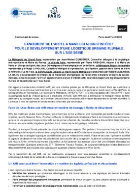 La Métropole du Grand Paris, la Ville de Paris, la Métropole Rouen Normandie, la communauté urbaine Le Havre Seine Métropole représentée, lancent ce jeudi 7 avril un appel à manifestation d’intérêt (AMI) pour développer une logistique urbaine fluviale et décarbonée sur l’axe Seine.