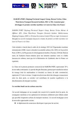 Développement, Maritime : Communiqué de presse - Partenariat HAROPA PORT Ningbo-Zhoushan pour un corridor vert