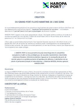 Un nouvel établissement portuaire est né aujourd’hui du regroupement des ports du Havre, de Rouen et de Paris. Les trois établissements fusionnent pour devenir « Grand port fluvio-maritime de l’axe Seine » ; ils constituent désormais le 1er port de France et le 5ᵉ port nord-européen, de dimension mondiale. HAROPA PORT s’appuie sur des atouts géographiques uniques. Une façade maritime ouverte sur le monde et un axe Seine qui dessert par voie naturelle un bassin de consommation (Paris et l’Ile de France) de 25 millions de personnes, le 1ᵉ en France et le 2ᵉ en Europe.