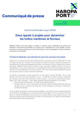 HAROPA PORT lance deux appels à projets, le premier pour l’exploitation du terminal de Radicatel à Saint-Jean-de-Folleville et le second pour l’exploitation du quai CARUE à Grand-Couronne. Les deux procédures, lancées le 23 octobre, visent à développer les trafics maritimes et fluviaux sur l’axe Seine.