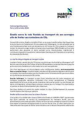 Fluvial, Transition énergétique : Enedis ouvre la voie fluviale au transport de ses ouvrages afin de limiter ses émissions de C02