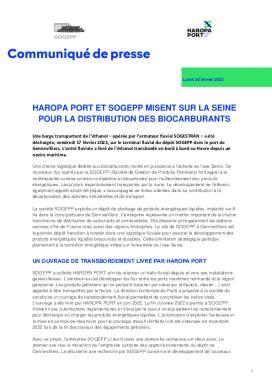 Fluvial : HAROPA PORT et SOGEPP misent sur la Seine pour la distribution des biocarburants