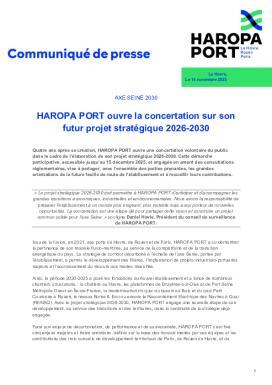 Quatre ans après sa création, HAROPA PORT ouvre une concertation volontaire du public dans le cadre de l’élaboration de son projet stratégique 2026-2030. Cette démarche participative, accessible jusqu’au 15 décembre 2025, et engagée en amont des consultations réglementaires, vise à partager, avec l’ensemble des parties prenantes, les grandes orientations de la future feuille de route de l’établissement et à recueillir leurs contributions.