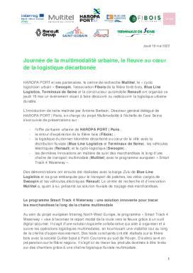 HAROPA PORT et ses partenaires, le centre de recherche Multitel, le « cyclo logisticien urbain » Swoopin, l’association Fibois de la filière forêt-bois, Blue Line Logistics, Terminaux de Seine et le constructeur automobile Renault ont organisé ce jeudi 19 mai un événement visant à faire découvrir ou redécouvrir la logistique urbaine durable.