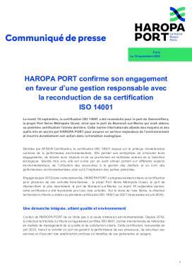 Communiqué de presse - La certification ISO 14001 reconduite pour HAROPA PORT