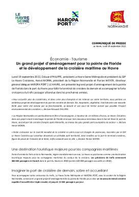 Lundi 19 septembre 2022, Édouard PHILIPPE, président Le Havre Seine Métropole et président du GIP Le Havre Croisières, Hervé MORIN, président de la Région Normandie et Florian WEYER, directeur général délégué HAROPA PORT | Le Havre, ont présenté le grand projet d’aménagement de la pointe de Floride dans le port du Havre pour bâtir le terminal de croisière de demain et accompagner la forte croissance du trafic passager attendue dans les prochaines années.