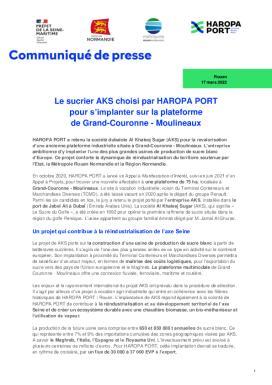 HAROPA PORT a retenu la société dubaïote Al Khaleej Sugar (AKS) pour la revalorisation d’une ancienne plateforme industrielle située à Grand-Couronne - Moulineaux. L’entreprise ambitionne d’y implanter l’une des plus grandes usines de production de sucre blanc d’Europe. Ce projet conforte la dynamique de réindustrialisation du territoire soutenue par l’Etat, la Métropole Rouen Normandie et la Région Normandie.