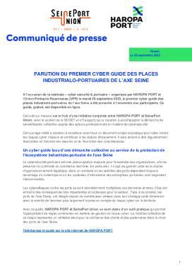 A l’occasion de la matinale « cyber sécurité & portuaire » organisée par HAROPA PORT et l’Union Portuaire Rouennaise (UPR) le mardi 26 septembre 2023, le premier cyber guide des places industrialo-portuaires de l’axe Seine a été présenté à l’ensemble des participants. Ce guide, gratuit, est disponible en ligne.