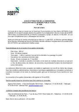 Avis d'attribution de la convention d'occupation du domaine public fluvial N° 4228
