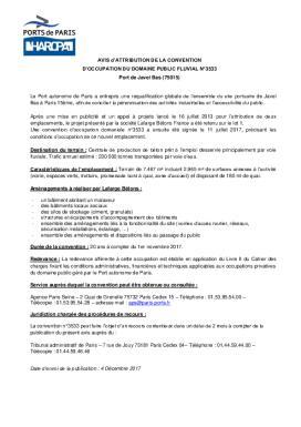 • Avis dattribution de la convention doccupation du domaine public fluvial n°3533
