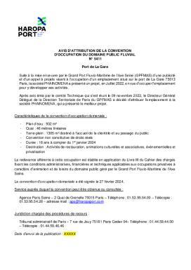 Avis d’attribution des autorisations domaniales : Avis d'attribution de la convention d'occupation du domaine public fluvial n°5411 - Port de la gare - PHAINOMENA