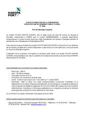 Avis d'attribution de la convention d'occupation du domaine public fluvial n°5848