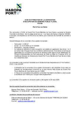Avis d’attribution des autorisations domaniales : Avis d'attribution de la convention d'occupation du domaine public fluvial n°6106Port d’Ivry sur Seine
