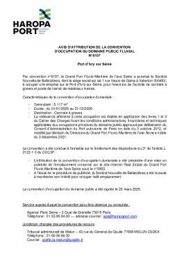 Avis d’attribution des autorisations domaniales : Avis d'attribution de la convention d'occupation du domaine public fluvial n°6107Port d’Ivry sur Seine
