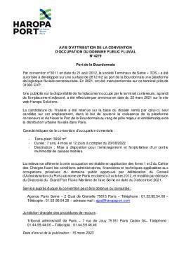 Avis d'attribution de la convention d'occupation du domaine public fluvial n°4279
