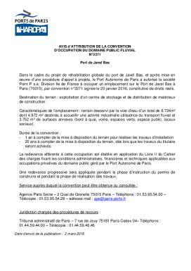 Avis dattribution de la convention n°3371 sur le Port de Javel Bas à la société Point P SA Division Ile de France