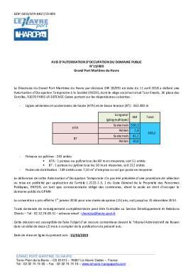 AVIS DAUTORISATION DOCCUPATION DU DOMAINE PUBLIC - N°19/009 Grand Port Maritime du Havre