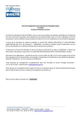 Avis dautorisation doccupation du domaine public N°19/038 - Grand Port Maritime du Havre