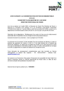 Avis d'avenant à la convention d'occupation du domaine public n°21-014 SCI AUXAL