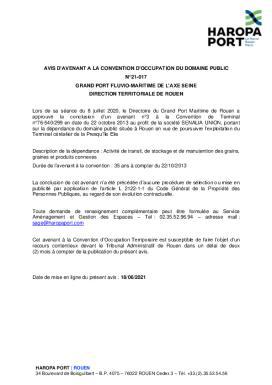 Avis d'avenant à la convention d'occupation du domaine public n°21-017 SENALIA UNION