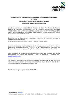Avis d'avenant à la convention d'occupation du domaine public n°21-019 SEA TANK