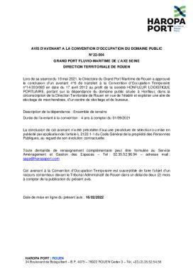Avis d'avenant à la convention d'occupation du domaine public N°22-004 - HLP