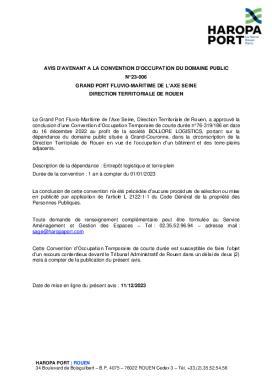 Avis d'avenant à la convention d'occupation du domaine public n°23-006