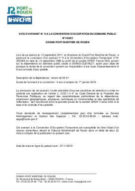 AVIS DAVENANT N° 9 A LA CONVENTION DOCCUPATION DU DOMAINE PUBLIC - N°19/003 - GRAND PORT MARITIME DE ROUEN
