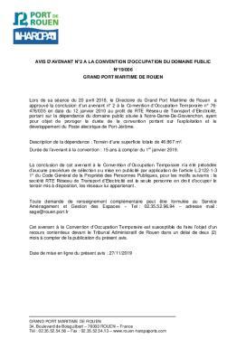 AVIS DAVENANT N°2 A LA CONVENTION DOCCUPATION DU DOMAINE PUBLIC - N°19/006 - GRAND PORT MARITIME DE ROUEN