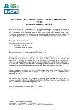 AVIS DAVENANT N°5 A LA CONVENTION DOCCUPATION DU DOMAINE PUBLIC - N°19/002 - GRAND PORT MARITIME DE ROUEN