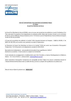 AVIS DE CONVENTION DOCCUPATION DU DOMAINE PUBLIC - N°19/001 Grand Port Maritime du Havre