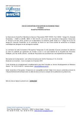 AVIS DE CONVENTION DOCCUPATION DU DOMAINE PUBLIC N°19/013 - Grand Port Maritime du Havre