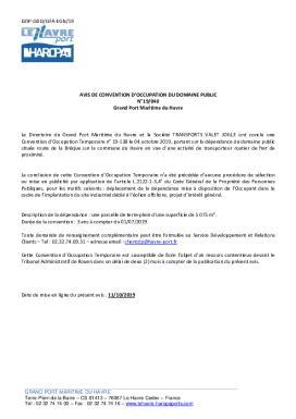 Avis de convention doccupation du domaine public N°19/040 - Grand Port Maritime du Havre
