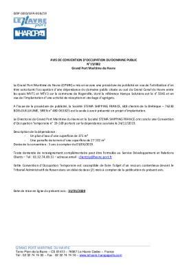 AVIS DE CONVENTION DOCCUPATION DU DOMAINE PUBLIC N°19/082 Grand Port Maritime du Havre