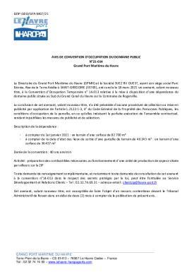 AVIS DE CONVENTION DOCCUPATION DU DOMAINE PUBLIC N°21-014