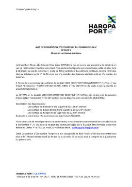 Avis de convention doccupation du domaine public N°21/071 - Direction territoriale du Havre