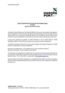 Avis de convention doccupation du domaine public N°22/002 - Direction territoriale du Havre