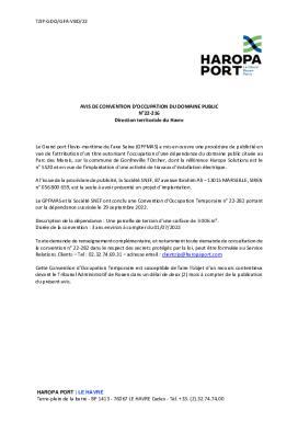 Avis de convention d'occupation du domaine public n°22/216